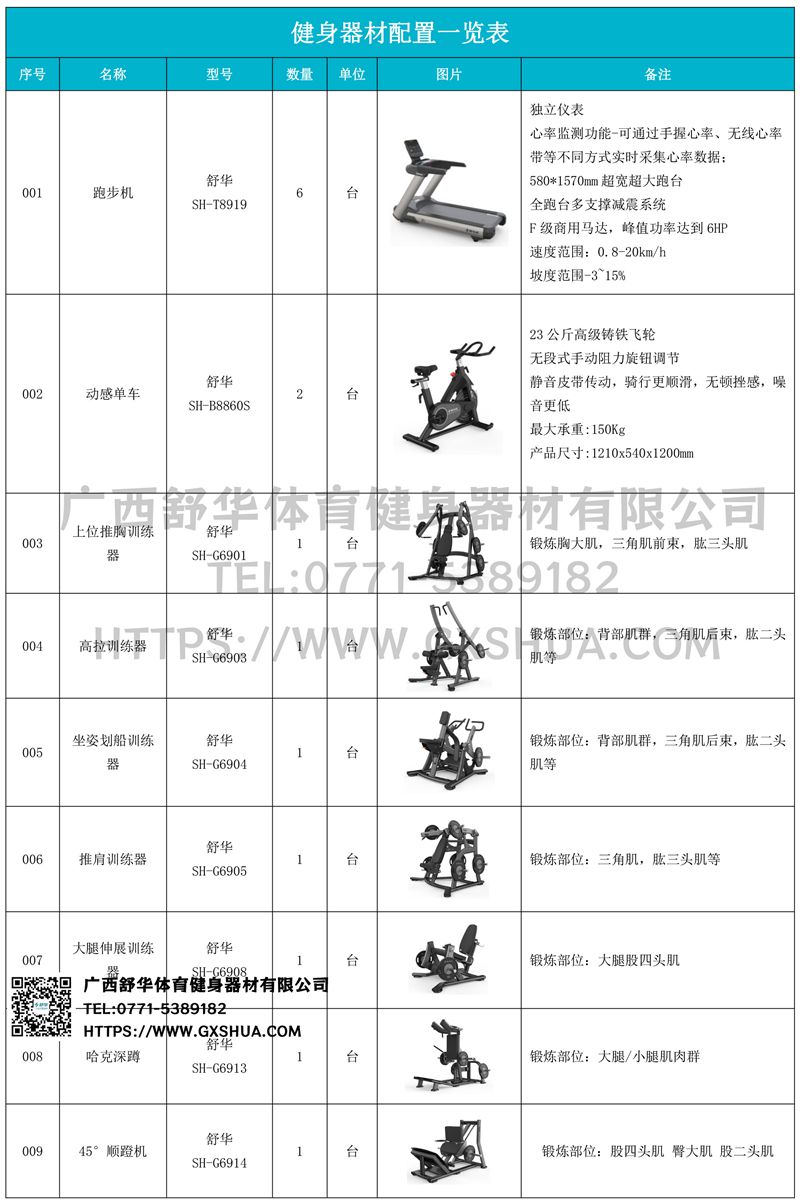 1.谈求吧V9跑步机SH-T8919*6台-580*1570mm超宽超大跑台-跑感舒适,跑台整体安全稳定;全跑台多支撑减震平台,保证跑台超强支撑力,达到180kg支撑,满足专业健身房需求。F级商用马达-超强马达,AC 3.0HP 交流,峰值功率达到6HP,F级商用品质。速度范围达到0.8-20km/h;V9跑步机可实现跑台扬升功能,坡度范围-3~15%,满足客户不同的锻炼需求。