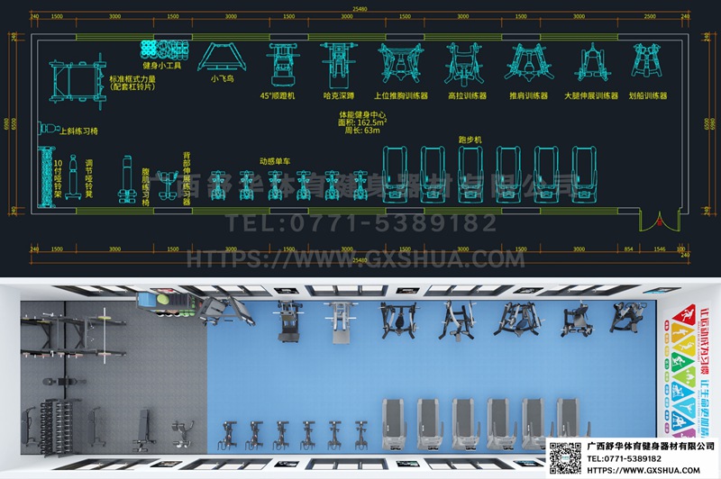 此方案要求面积小于163m²,适用于企事业单位、酒店会所、楼盘社区、工作室、学校等健身场所,能满25-30人同时健身使用。(方案根据场地空间大小、预算、产品需求等进行配置仅为启发性参考)